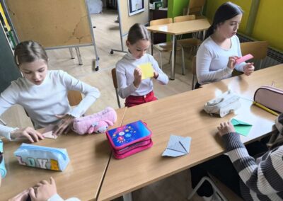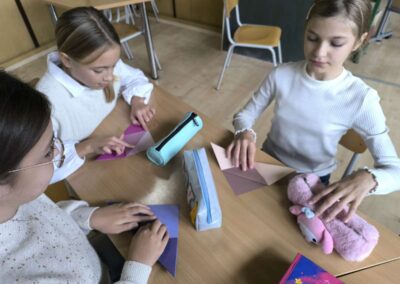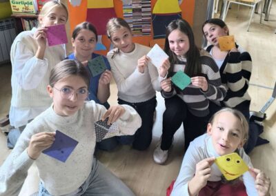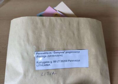 Ove godine izrađivali smo straničnike za naše nove prijatelje u Litvi. Učenice, članice skupine Knjigolovke, izradile su origami-bookmarkere koje su dodatno ukrasile crtežima te uz svaki priložile kratku poruku na engleskom jeziku u kojoj su se predstavile. Straničnike smo poslali u Panevėžio m. “Žemynos” progimnazija, u Litvu.
