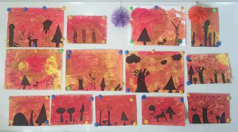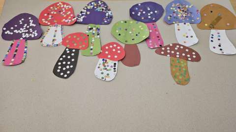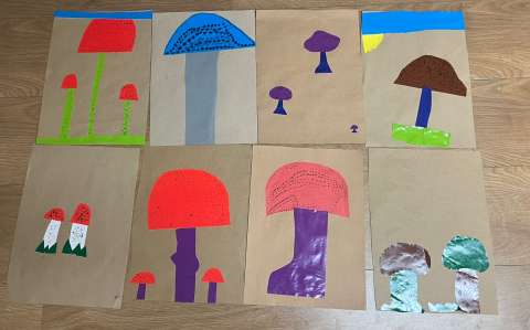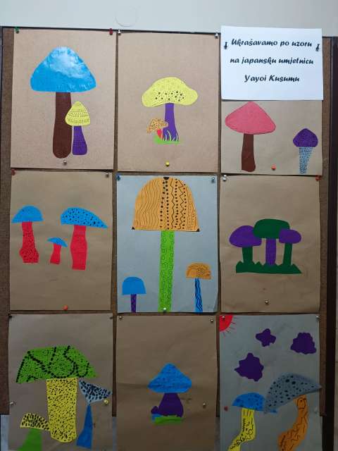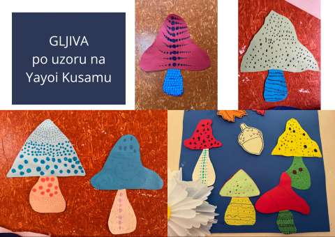 likovni izričaj: Moje ljeto u sličicama, Gljiva (po uzoru na Yayoi Kusamu), Jesenska šuma;