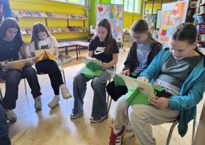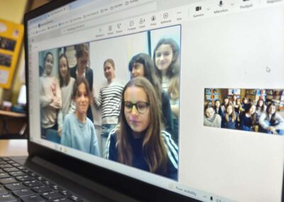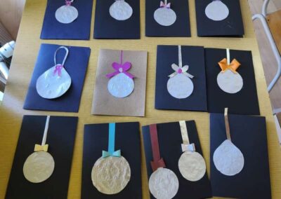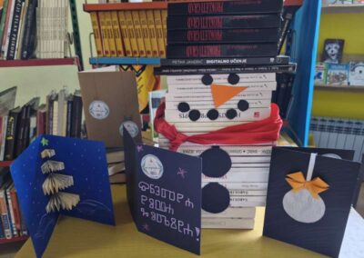Tijekom studenoga smo izrađivali prijedloge za logo projekta i glasali za najljepši. A u prosincu smo izrađivali prigodne čestitke s motivima glagoljice te održali videosusret s novim prijateljima iz OŠ Split kojima smo čestitke i poslali. Svoje kreativne radove predstavili smo svim partnerima prigodnim videom.