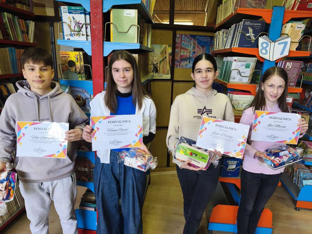 U školskoj knjižnici održana je mala, ali svečana dodjela nagrada i pohvalnica za učenike koji su ostvarili najbolje rezultate u kvizu Digitalna potjera: pretraži, pronađi, pobijedi!