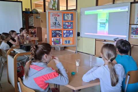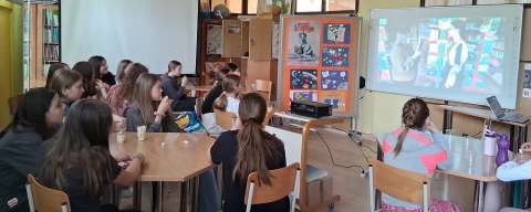 Središnji dio našeg prigodnog programa “U sveMIRu knjiga” bila je projekcija učeničkih video uradaka u kojima su naši učenici predstavljali knjige koje su čitali tijekom posljednjih pet godina. Riječ je o radovima koji su već predstavljani na završnicama različitih projekata u kojima redovito sudjeluju, a koji svjedoče o kontinuitetu rada, njihovom trudu i kreativnosti. Kroz zanimljive i maštovite prikaze, učenici su prenijeli svoje doživljaje pročitanih djela, preporučili ih vršnjacima te pokazali kako čitanje može biti inspirativno i zabavno.